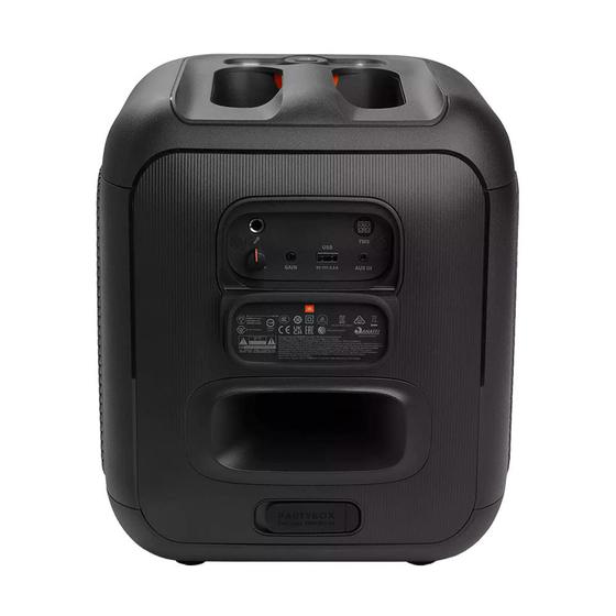 Com Design Moderno e Compacto! A Party Encore Essential alia tecnologia com elegância para proporcionar uma experiência musical e visual de alto nível. Totalmente portátil, essa caixa conta com botões minimalistas na parte superior para o controle de funções de forma prática e rápida, já na parte traseira da caixa de som você encontra mais funções e conexões de entrada. Além disso, essa caixa da JBL tem duto de ar e alça para empunhar.
